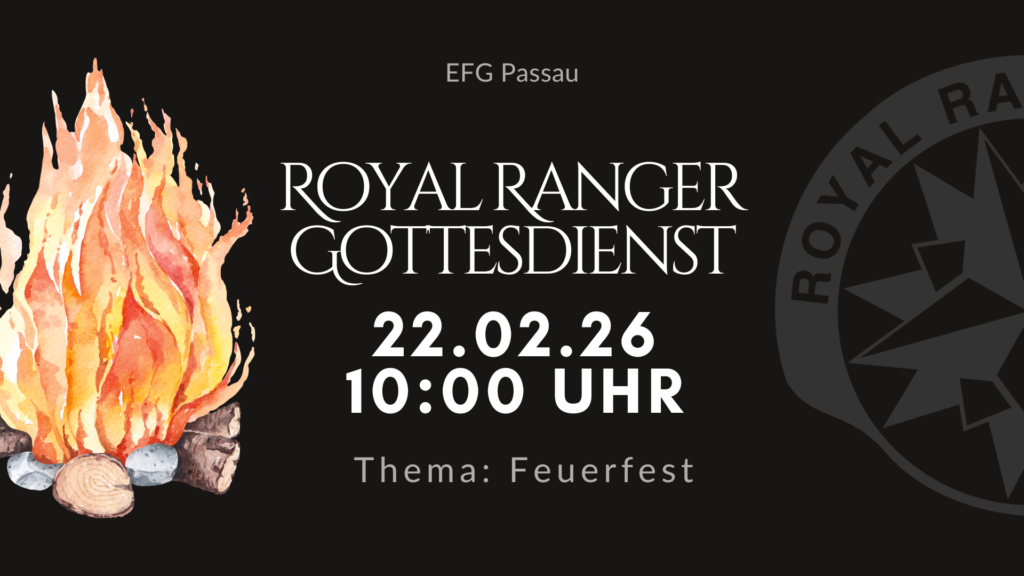 Zum Thema: ‚Feuerfest‘ gestaltet unser Pfadfinder Stamm 400 einen Gottesdienst. Da geht es wie immer hoch her, und neben Anbetung und Predigt gibt es während des Gottesdienstes immer wieder neue Elemente. Danach essen wir gemeinsam.